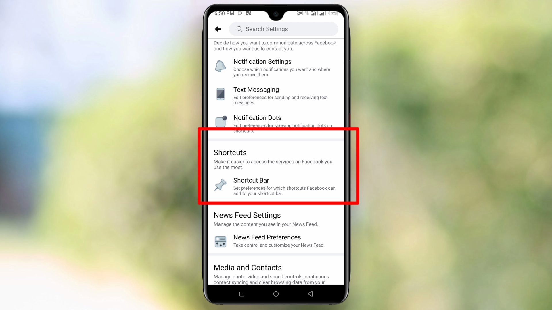 ৩. এবার আপনি কিছুটা নিচে চলে আসলে এখানে পেয়ে যাবেন 'Shortcut Bar' সেটিং। আপনি এটির উপর ক্লিক করুন।