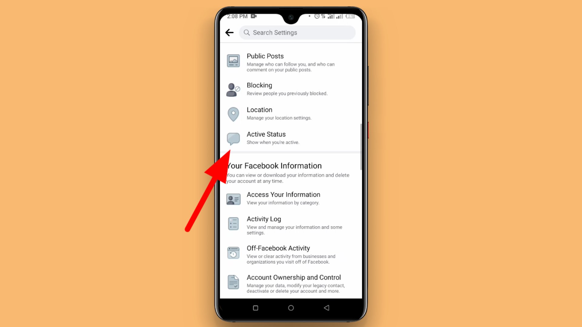 ২. এরপর সেটিং থেকে একটু নিচে চলে আসলে পেয়ে যাবেন Active status নামের একটি সেটিং; এবার আপনি এই সেটিং টিতে চলে যাবেন।