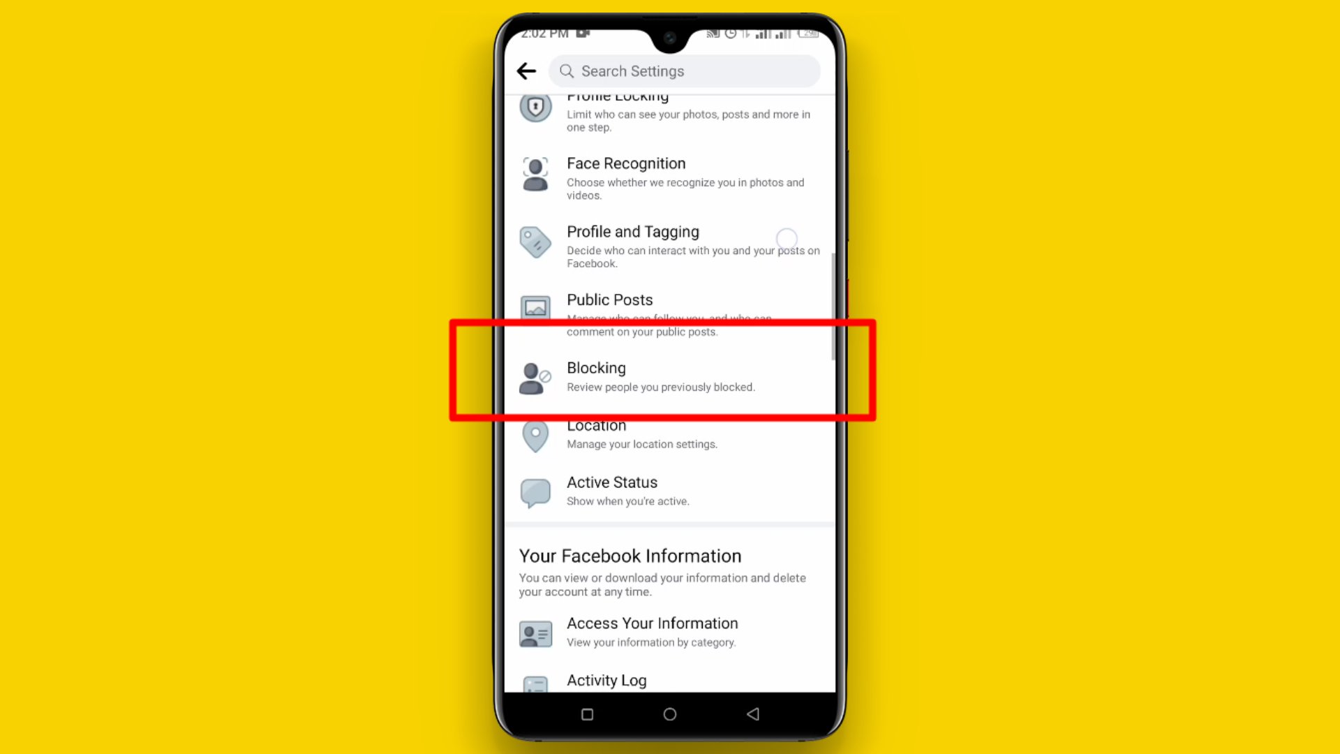২. এবার এখানকার সেটিং থেকে আপনাকে খুঁজে নিতে হবে Blocking নামের অপশন। এই সেটিং টি আপনি একটু নিচের দিকে চলে আসলেই পেয়ে যাবেন। যেখান থেকে আপনি এটির উপর ক্লিক করবেন।