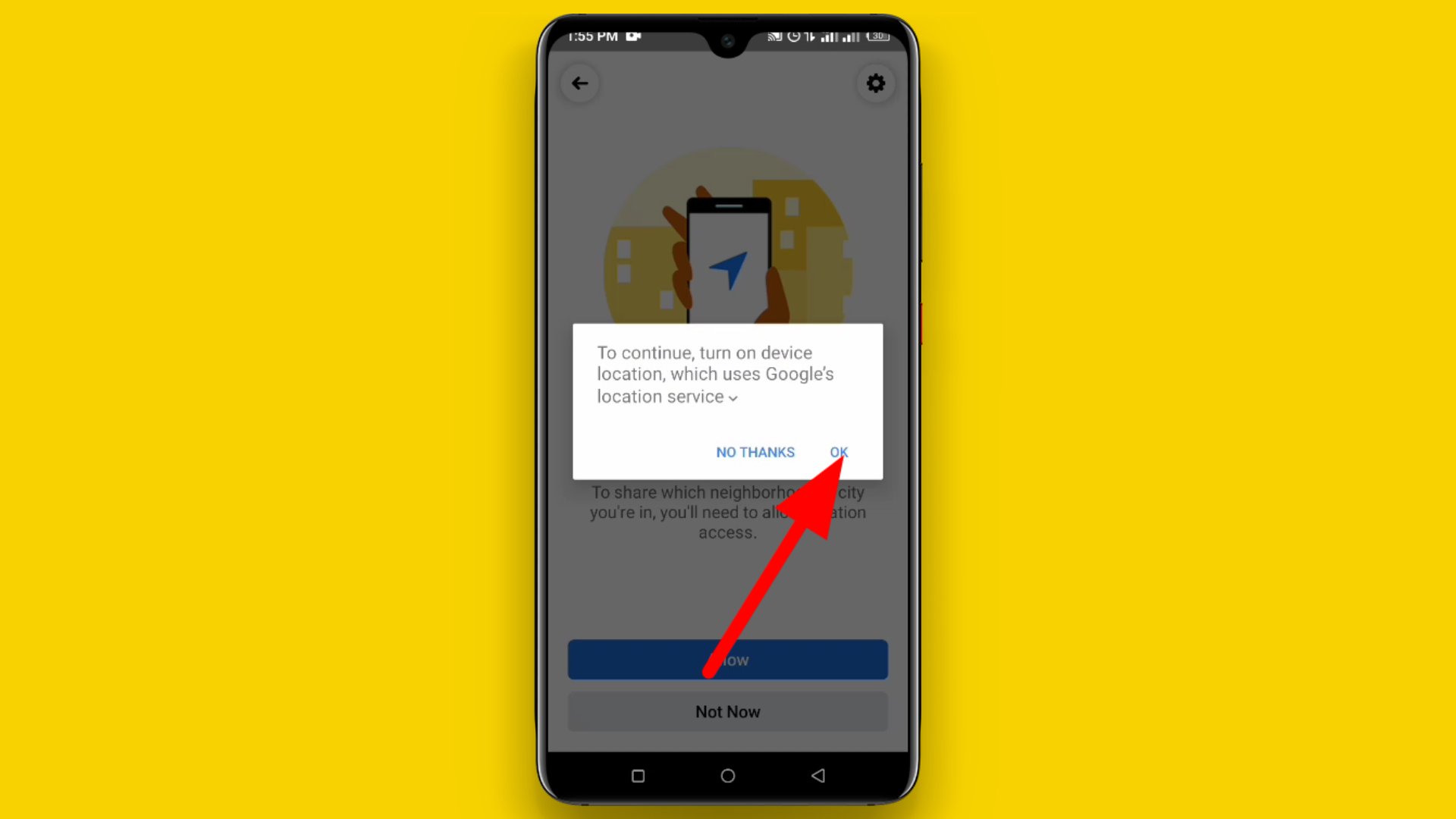 ৩. এবার আপনার মোবাইলে যদি লোকেশন সেই মুহূর্তে চালু করা না থাকে, তবে লোকেশন চালু করার অপশন চলে আসবে এবং আপনি এখান থেকে ok-তে প্রেস করবেন। আর তাহলেই আপনার মোবাইলের লোকেশন চালু হয়ে যাবে এবং আপনাকে আপনার বন্ধুদের অবস্থান জানানোর পৃষ্ঠায় নিয়ে যাবে।