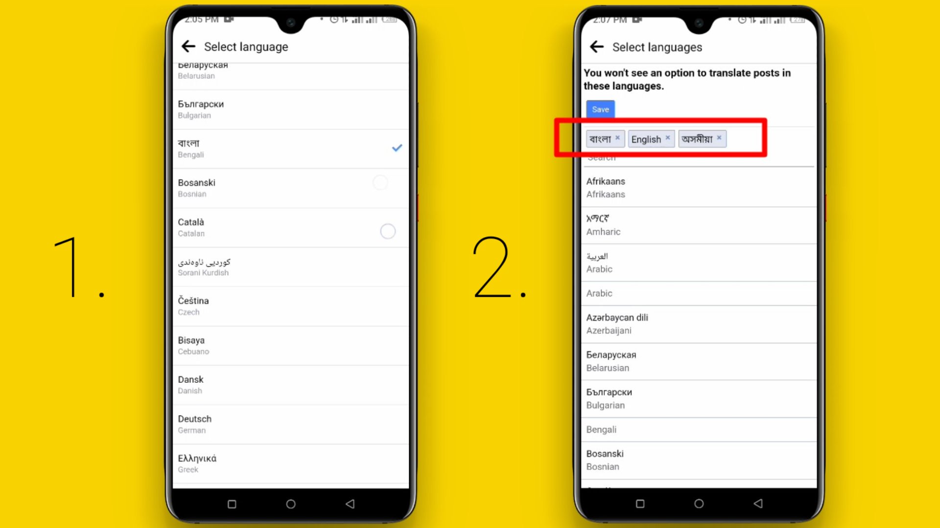 ৪. এরপর এখানে আপনি সমস্ত ভাষা দেখতে পাবেন এবং আপনার পছন্দের ভাষা গুলোকে এক এক করে সিলেক্ট করতে পারেন। এখান থেকে আপনি যেগুলো ভাষা সিলেক্ট করবেন, সেগুলো আপনি উপরে দেখতে পাবেন নিচের দ্বিতীয় চিত্রের মত।