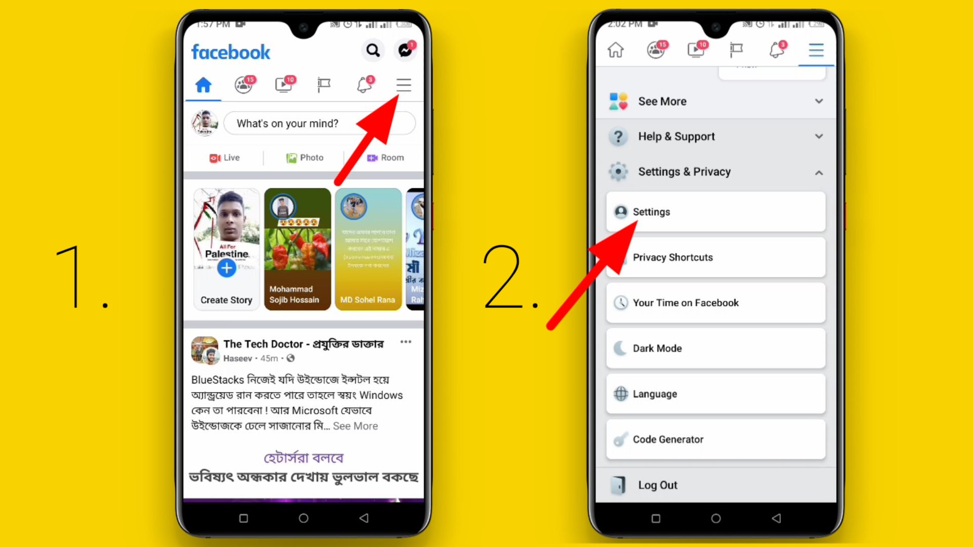১. এজন্য আপনাকে ফেসবুকের সেটিং অপশনে চলে যেতে হবে।