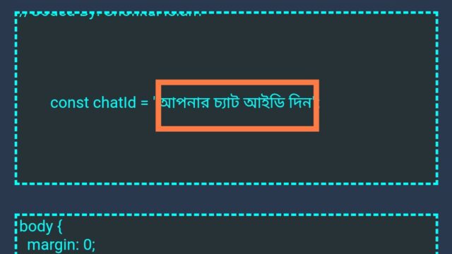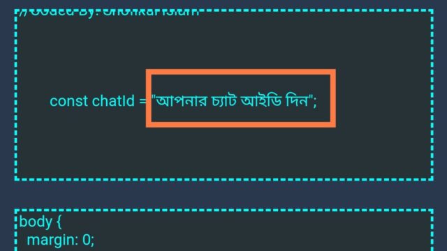 স্ক্রোল করতে থাকলে একটু নিচে আপনারা দেখতে পারবেন ❝আপনার চ্যাট আইডি দিন ❞ এই অপশন টা থেকে (") এই চিহ্ন টা রেখে ভিতরের বাকি লেখাগুলো কেটে দিন।