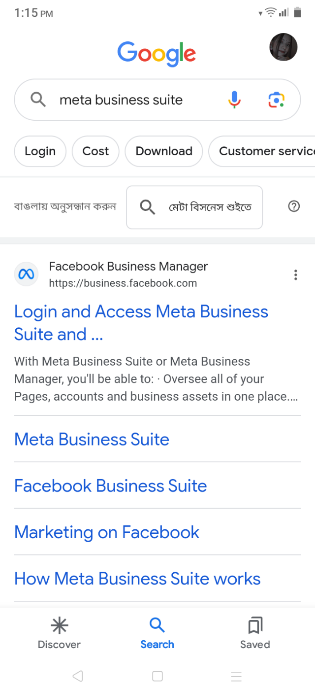 ১. তো প্লেলিস্ট তৈরি করার জন্য আমরা সরাসরি চলে যাব আমাদের যেই Meta Business Suit রয়েছে ফেসবুক পেইজের সেইখানে চলে যাব। গুগল ক্রোম এর মাধ্যমে লগইন করে মেটা বিজনেস প্রবেশ করতে পারবেন। অথবা মেয়েটা বিজনেস সুইট এসটির মাধ্যমে প্রবেশ করতে পারবে। গুগল ক্রোম ব্রাউজার এর মাধ্যমে প্রবেশ করার জন্য সার্চ বারে লিখবেন Facebook Page Meta Business Suit. তাহলে আপনার সামনে চলে আসবে। ওয়েবসাইটটিতে ক্লিক করে প্রবেশ করবেন।