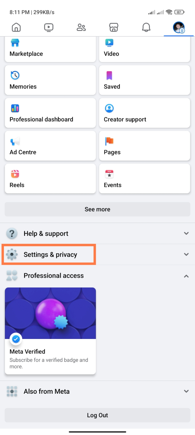 ৪. এবার আপনারা স্ক্রোল করে একটু নীচ থেকে Settting And Privacy অপশনে ক্লিক করবেন।