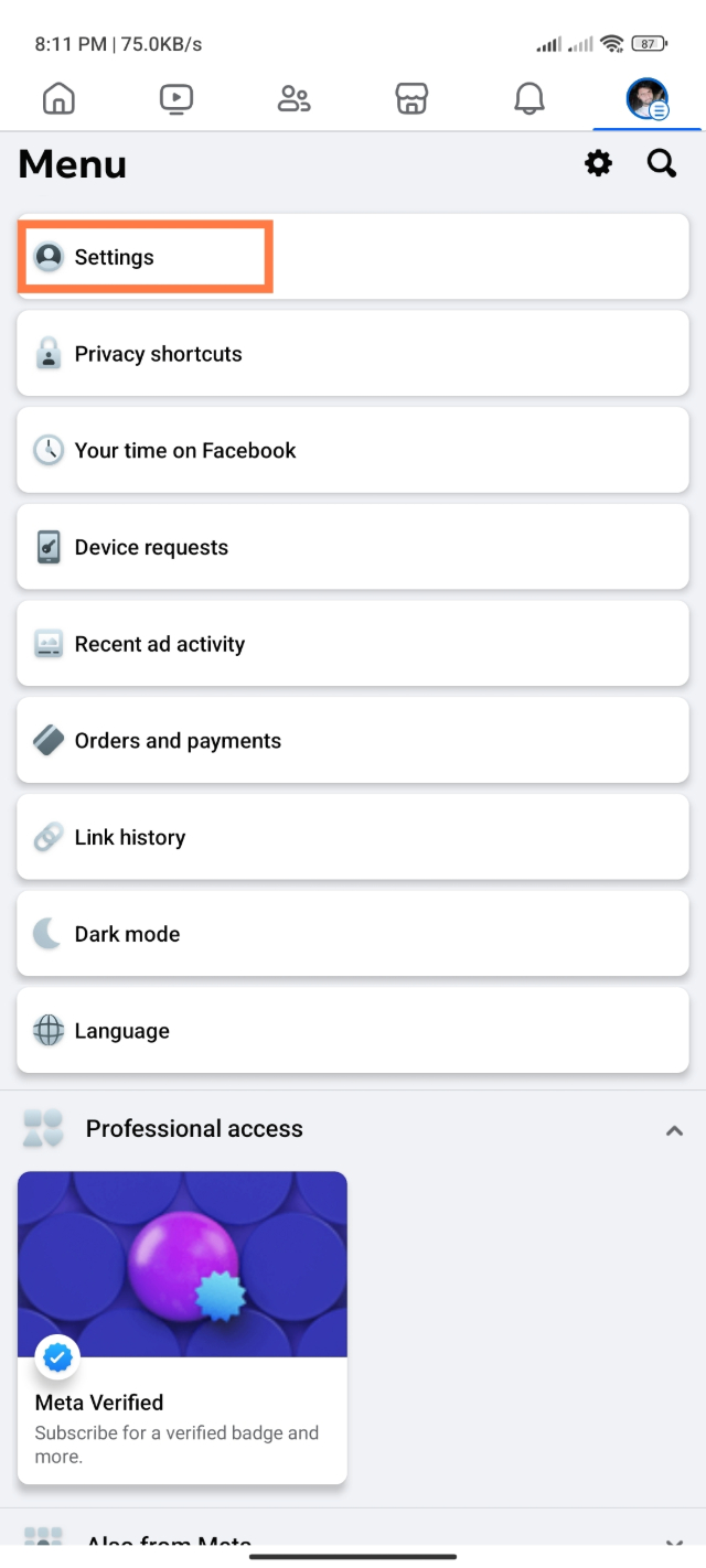 ৩. তারপর আপনার বাম কোণের একদম উপরে অ্যাকাউন্ট মেনুবার অপশনে ক্লিক করুন।