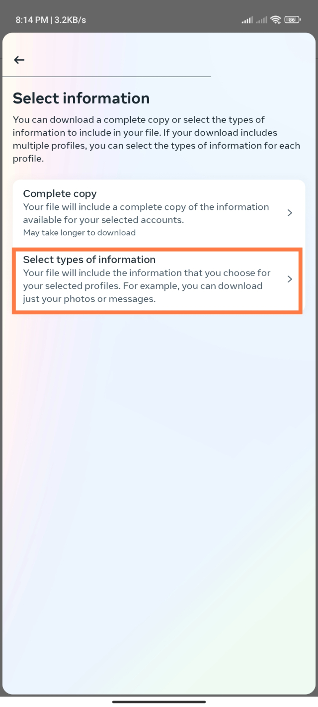 ১০. এবার আপনারা নীচ থেকে Select Types Of Information অপশনে ক্লিক করবেন।
