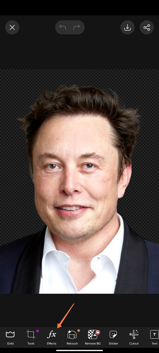 ৩. তারপর আপনারা (+) আইকনে ক্লিক করে একটু আগেই যে ইমেজটির ব্যাকগ্রাউন্ড রিমুভ করলেন বা যে ইমেজটির ইল্যুশন ফটো বানাতে চান সেই ইমেজটি সিলেক্ট করে দিবেন। ফটোটি সিলেক্ট করে দেওয়ার পর নিচের FX লেখায় ক্লিক করবেন।