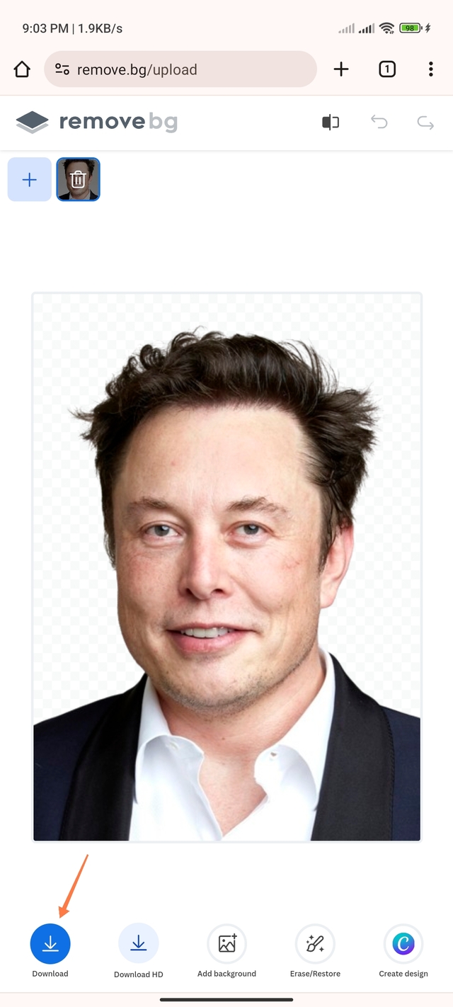 ১. তো আমরা আমাদের সর্বপ্রথম ধাপে চলে যাই। আমরা আমাদের কাজের জন্য যেকোনো একটি ফটো বাছাই করে নিলাম। এবার আপনার ফটোটির ব্যাকগ্রাউন্ড রিমুভ করে নিবেন। আপনারা Remove.Bg এই ওয়েবসাইট থেকে ফটোর ব্যাকগ্রাউন্ড খুব সহজেই রিমুভ করতে পারবেন।