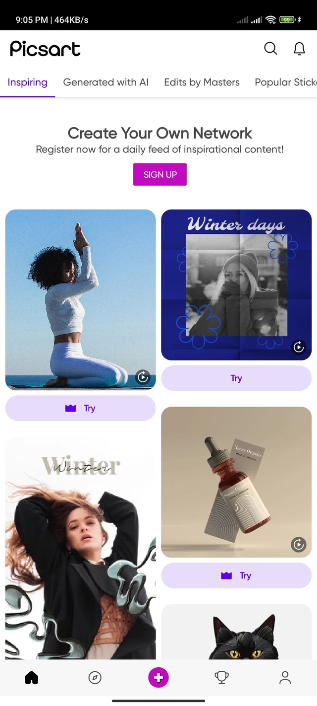 ২. এবার আপনারা আপনাদের ফোনে থাকা PicsArt App টি ওপেন করবেন। যাদের ফোনে PicsArt Photo Editor App টি নাই, তারা প্লেস্টোর থেকে PicsArt Photo Editor App টি আপনাদের ফোনে ইন্সটল করে নিবেন। তারপর ওপেন করলে ঠিক আমার মতো ইন্টারফেস পাবেন।
