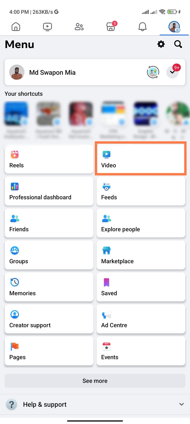 ৪. এবার একটু নিচে All Shortcuts থেকে ভিডিও অপশনে ক্লিক করবেন।