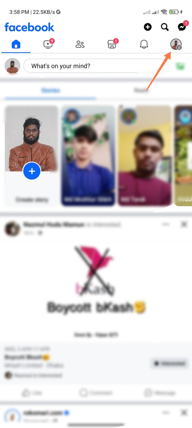 ৫. তারপর উপরে ডানকোনে প্রোফাইলে মতো আইকনে ক্লিক করবেন।