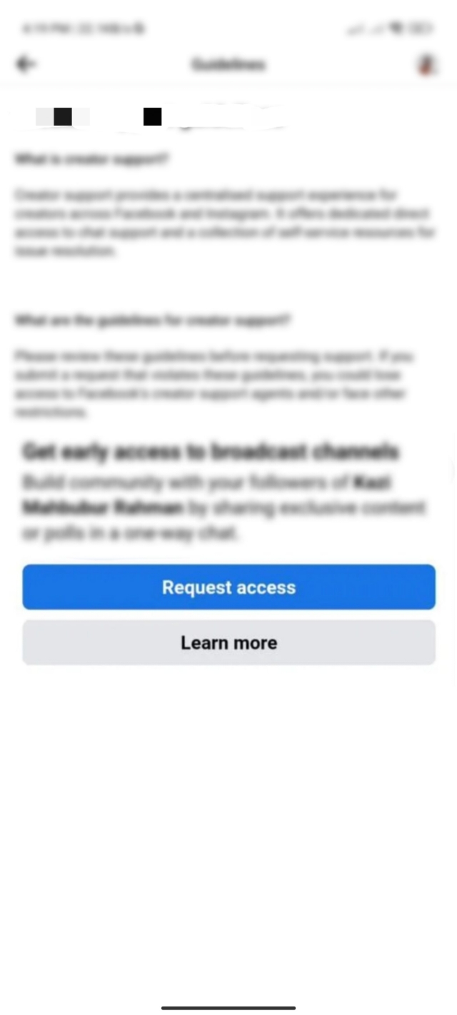 FaceBook এর শর্তগুলো পূরণ করা হয়ে গেলে FaceBook Broadcast Channel খোলার জন্য প্রথমেই আপনাকে FaceBook Broadcast Channel Early Acces লিংকটিতে ক্লিক করতে হবে। লিংকটি আমি টিউনের শেষে দিয়ে দিবো।