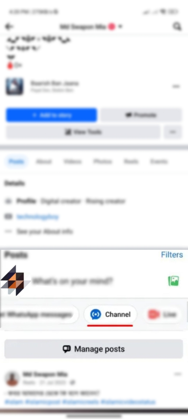 ২. তারপর আপনারা আপনাদের ফেসবুক প্রোফাইলে চলে যাবেন। প্রফাইলের একটু নিচে টিউন অপশনের নিচের দিকে Channel নামের অপশনটিতে ক্লিক করুন।