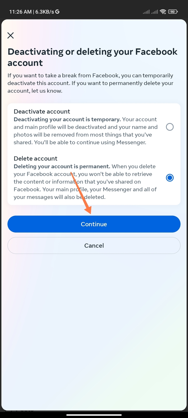 ৭. তারপর "Continue to Account Deletion" অপশনটি সিলেক্ট করুন।