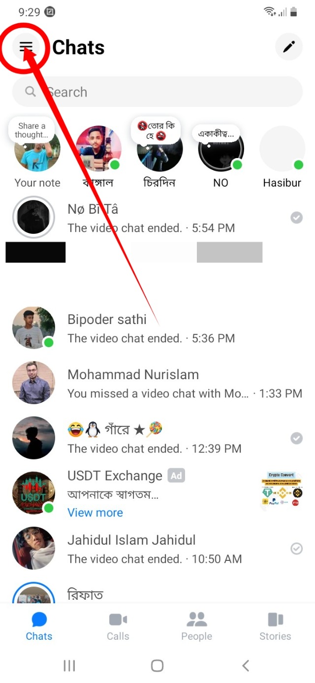 ১. প্রথমে মেসেঞ্জারে প্রবেশ করুন তারপর উপরে বাম দিকে থ্রি ডট আইকনে ক্লিক করুন।