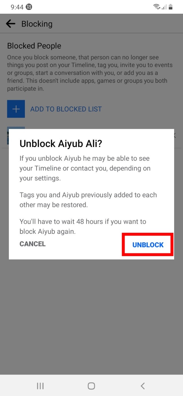 তাহলেই আবার সেই ব্যক্তিটিকে আপনার ফেসবুক আইডি থেকে ব্লক থেকে আনব্লক করা হয়ে যাবে।