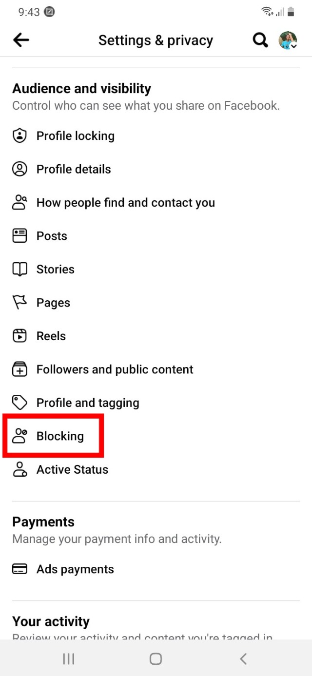 ৫. তারপর অনেকগুলো লিস্ট থেকে ব্লকিং অপশনটি খুঁজে সেটিতে ক্লিক করুন।