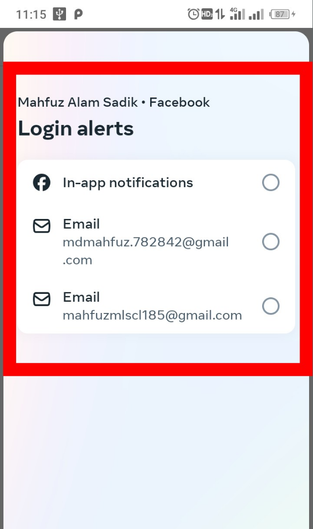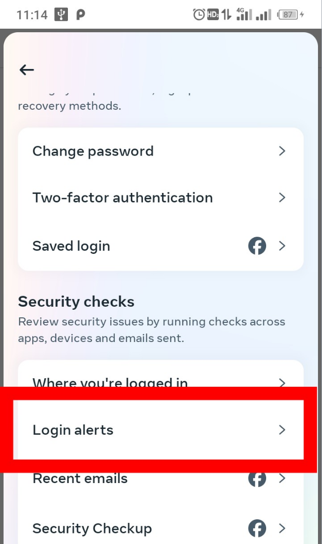 ৬. এবার আপনার সামনে নতুন একটি পেজ ওপেন হবে এখান থেকে Login Alerts এটার উপর ট্যাপ করে দিবেন।