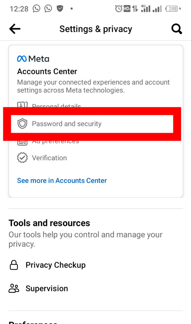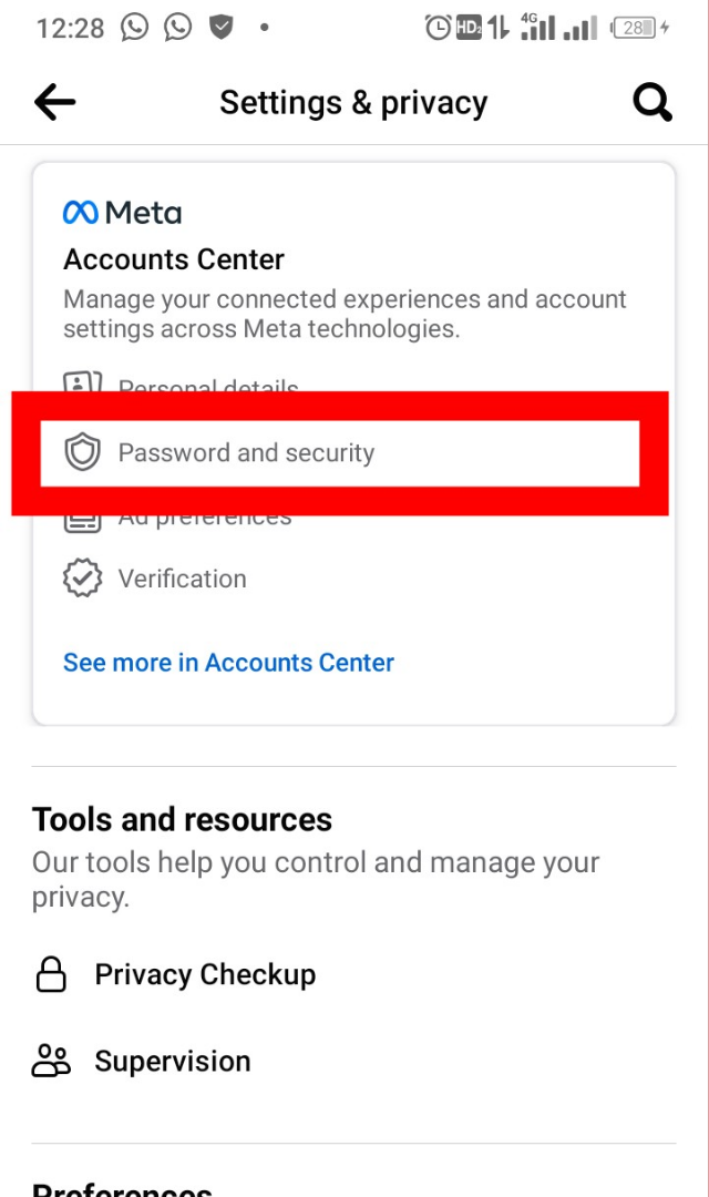 ৪. এবার Password And Security একটি অপশন পাবেন এটার উপর ক্লিক করবেন।