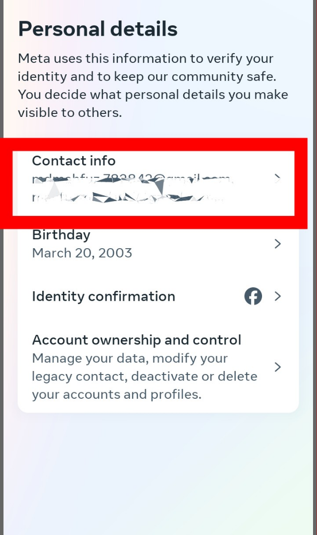 ৫. এখান থেকে Contact Info তে ক্লিক করবেন।