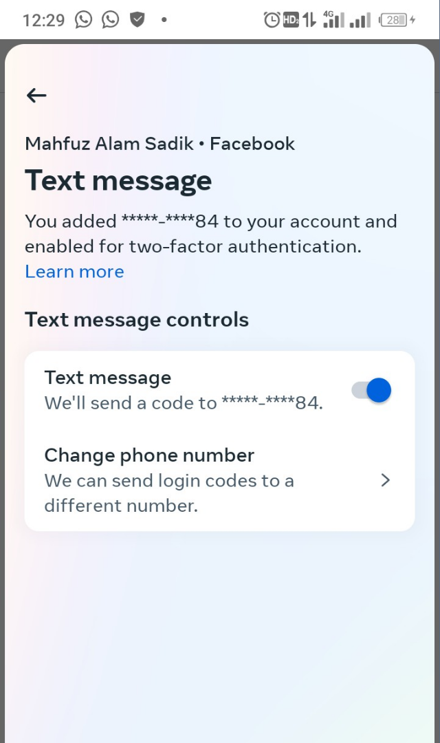 পরবর্তীতে যখন কেউ আপনার আইডি লগ-ইন করতে চাইবে তখন অবশ্যই আপনার সিমে একটি কোড আসবে, এই কোড যতক্ষণ না দেওয়া হবে ততক্ষণ পর্যন্ত কোন ব্যক্তি আপনার আইডিতে প্রবেশ করতে পারবে না। যেহেতু সিম আপনার, আইডি ও আপনার তাই হ্যাকার যদি পাসওয়ার্ড নিয়েও যায় তারপরে ও কিন্তু সিমে আসা কোড যেহেতু দিতে পারবে না তাই আপনার আইডিও ব্যবহার করতে পারবে না, তাই আপনার আইডি কিন্তু নিরাপদ থাকবে।