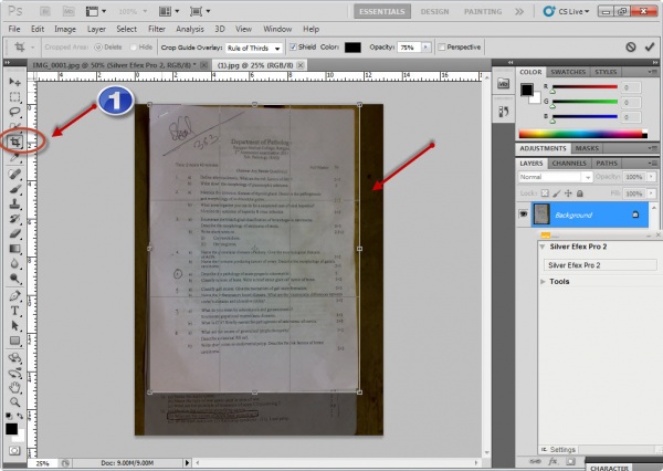 2. ছবির দুটিকে বাড়তি অংশ রয়েছে। এছাড়া ছবিটিকে সাদাকালো বানাতে হবে। তাই ফটোশপে ছবিটি ওপেন করুন। 1নং এর Crop Tool ব্যবহার করে বাড়তি জায়ড়াগুলো ফেলে দিন।