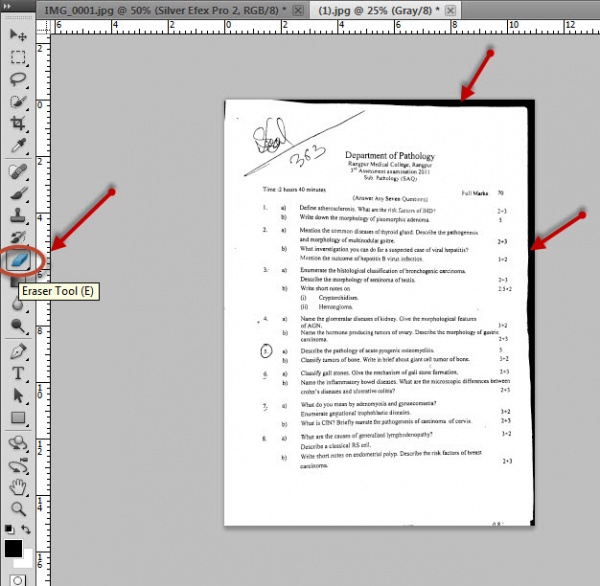 এখন চাইলে অপ্রয়োজনীয় অংশগুলো পরিষ্কার করতে পারেন। না চাইলে নাই। পরিষ্কার করতে ইরেজার টুল সিলেক্ট করুন। এরপর ঘষে পরিষ্কার করুন।