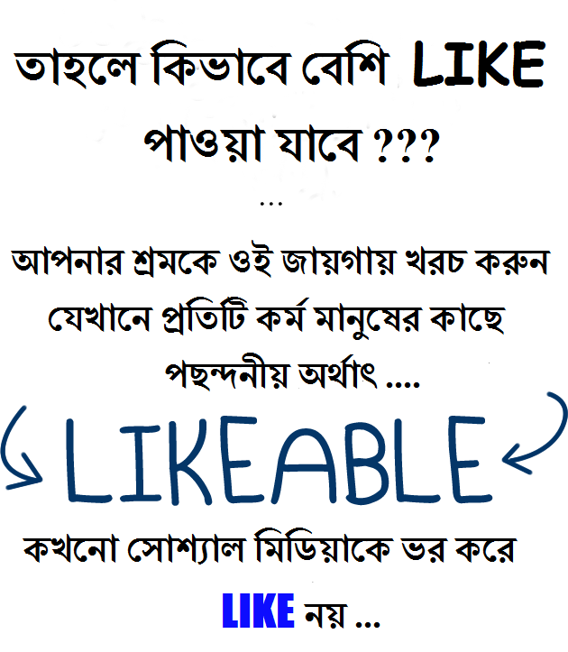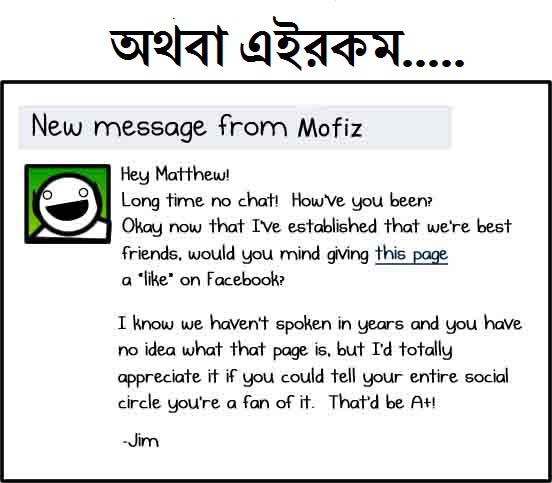 এটা আপনার গুন হবে আর থকন প্রত্যেক লাইক এর দাম থাকবে,হইত আপনি বলবেন ইনভাইট অপশন দিয়েছে কেন ?? আপনি একটি পেইজ বানিয়ে ও তাতে আমন্ত্রণ জানাতে পারেন কিন্তু সত্য বলতে অধিকাংশ ক্ষেত্রে আপনার বন্ধুরা আপনার পেইজটি পছন্দ করবে না যা হয়তো আপনি চান না। পেইজে ভাল লিখা না দিয়েই যদি আপনি বন্ধুদের কাছে লাইক চান তাহলে তা ভিক্ষা চাওয়ার মতন। 😐 এটি করবেন না।