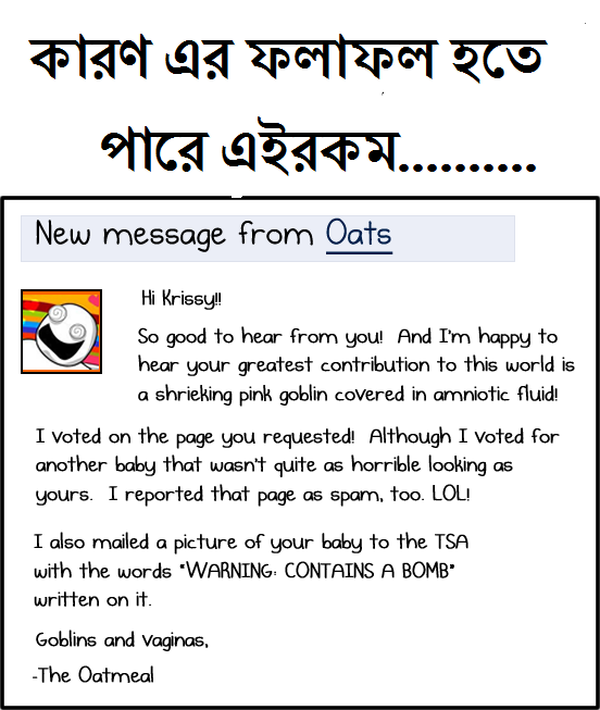 এটা মনে রাখবেন যে এই ১০ টি কাজ থেকে বিরত থাকলে আলাদা ভাবে spammers দের সনাক্ত করা যাবে নতুবা আপনিও ওদের দলে চলে যাবেন আপনি spammer না হয়েও !! কথা গেল বুঝাটা ???