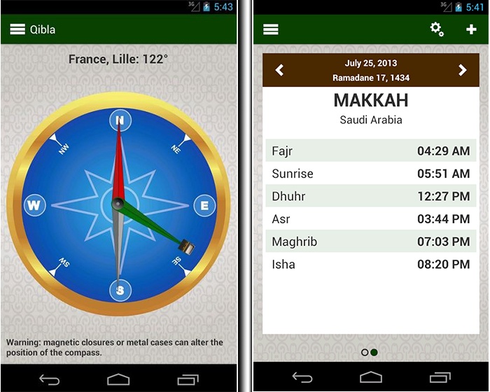 Prayer Times হলো কিবলা নির্ধারন এবং আযানের সময় দেখার জন্য সবচেয়ে গুরুত্বপূর্ণ অ্যাপ্লিকেশন। রমজান মাসে সেহরী ইফতারের সময় এবং যেকোন অপরিচিত জায়গায় সঠিক কিবলা নির্ধারন করা খুবই গুরুত্বপূর্ণ। বিশ্বের প্রায় ২৫১ টি দেশে এই অ্যাপ্লিকেশনটি নির্ভুল নামাজের সময় এবং কিবলার সঠিক অবস্থান নির্ধারন করতে পারে। তবে শুধু রমজান নয় সারা বছর প্রত্যেকটি ধর্মপ্রাণ মুসলমানদের জন্য অ্যাপ্লিকেশন সহায়ক ভুমিকা পালন করবে।