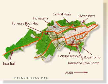 প্রত্নতত্ত্ববিদদের মতে মাচু পিচুর নগর প্রান্তে তিনটি ভাগ ছিল। সেগুলো হল