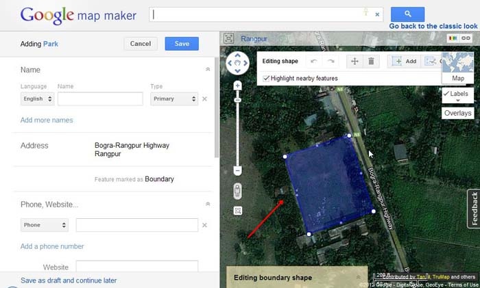 প্রথমে Add new থেকে Draw a Shape এ ক্লিক করুন। এখানে আমি একটি পার্ক (Park) বানাবো।