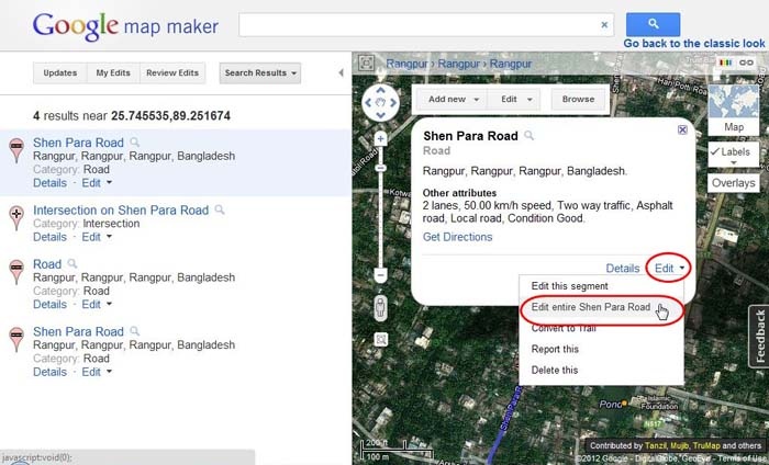 এবার Edit এ ক্লিক করুন। এখান থেকে Edit entire (রোডের নাম) এ ক্লিক করুন।
