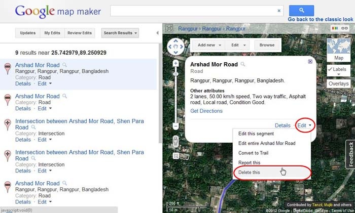 ধরুন আপনার এলাকার কোন রোড ভুলভাবে ম্যাপে এসেছে. বা রোডটি নেই কিন্তু ম্যাপে আছে এবং আপনি ডিরেট করতে চাচ্ছেন (সতর্কতার সাথে ডিলেট করুন, কারণ আসল রোড ডিলেট করলে ব্যবহারকারীরা অসুবিধায় পড়বে)।