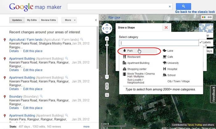 Category হিসাবে Park সিলেক্ট করলাম। রেস্টুরেন্ট বানাতে চাইলে Restaurent সিলেক্ট করবেন।