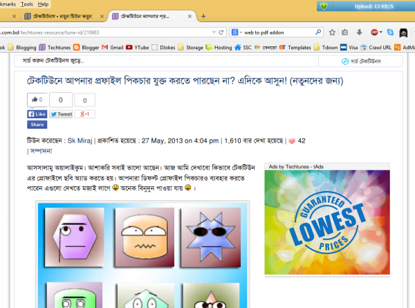 মনে করুন নিচের এই পেজটা অনেক গুরুত্তপুর্ন, কিভাবে টেকটিউনে প্রফাইল পিকচার অ্যাড করা যায় তার বিস্তারিত বিবরন আছে এতে। এই পেজ কিভাবে পিডিএফ আকারে সেভ করা যায় তা দেখা যাক।