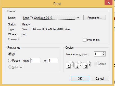 প্রথমে Ctrl+P প্রেস করে প্রিন্ট ডায়ালোবক্স থেকে send to onenote সিলেক্ট করে প্রিন্ট এ প্রেস করুন।