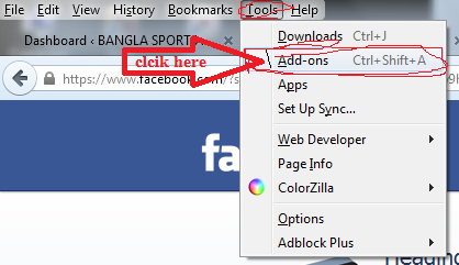 আপনি প্রথম আপনার মজিলা ফাইয়ার ফক্স টুলস ক্লিক করেন দেখবেন অ্যাড অন্স নামে একটি বার আছে সেখানে ক্লিক করুন। নিচের মতো আসবে।