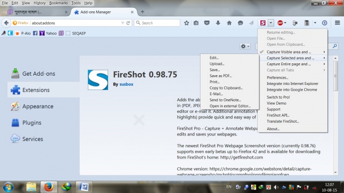 ফায়ারশট ta valo laglo. tobe ইমেজ অ্যাণ্ড ফ্ল্যাশ ব্লকার er jonno ad block plus user koren onek valo.