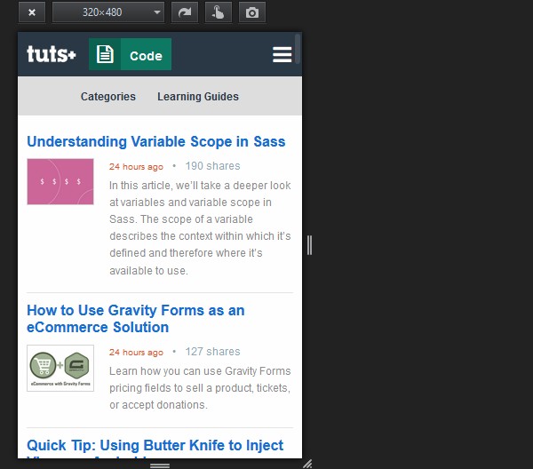 Firefox Developer Edition এর আরেকটা মজার জিনিস হল এটার রেসপন্সিভ ডিজাইন ভিউ। রেসপন্সিভ ডিজাইন সম্পর্কে আমরা সবাই কমবেশী সবাই ই জানি। আপনি ফায়ারফক্স ডেভলপার এডিশন ইউজ করে এই রেসপন্সিভ ডিজাইন ভিউ দেখতে বা চেক করতে পারবেন খুব সহজেই। আপনি এটা দেখার জন্য বা চেক করার জন্য জাস্ট আপনার কীবোর্ডের Ctrl + Shift + M বাটন চাপ দিতে হবে। এটার মাধ্যমে আপনি অনেকগুলো অপশন চেক করার সুযোগ পাবেন। যেমন ডিভাইসের সাইজ সেটিংস, রোটেটিং স্ক্রীণ সেটিংস, টাচ ইভেন্ট সিমুলেট করা এবং রেসপনন্সিভ মুডে স্ক্রীণশট নেওয়া।
