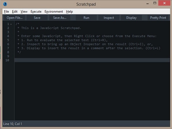 স্ক্রাচপ্যাড হল Firefox Developer Edition এর একটা মজার জিনিস এবং অনেক কাজের একটা জিনিস। এটা আপনি Shift + F4 প্রেস করে ওপেন করতে পারেন। এটার মাধ্যমে আপনি জাভাস্ক্রিপ্ট এর কোড এডিট, রান ডিবাগ এবং রেজাল্ট ও দেখতে পারবেন। অবশ্য আপনি বলতে পারেন যে ব্রাউজার কনসোল ও একই কাজ করে। কিন্তু না, ব্রাউজার কনসোলে আপনি জাস্ট একটা লাইন কোড নিয়ে কাজ করতে পারবেন, আর স্ক্রাচপ্যাড নিয়ে আপনি হিউজ পরিমাণ কোড একসাথে নিয়ে কাজ করতে পারবেন। এটা আপনি কীভাবে আউটপুট নিবেন তার উপরও ডিপেন্ড করছে।
