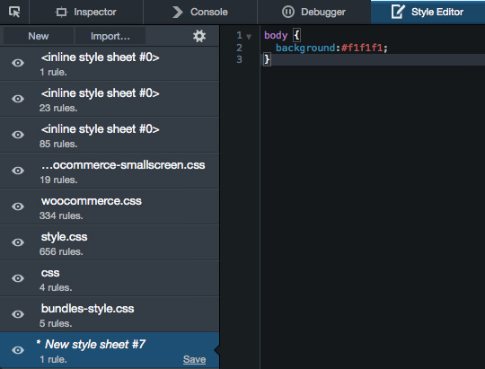 স্টাইল এডিটর হল আপনার ওয়েব সাইটের স্টাইল লেখা ও এগুলো লাইভ টেষ্ট করার জন্য একটা অসাম টুল। আপনি এখানে যেকোন লোডেড স্টাইলশীট সিলেক্ট করতে পারেন অথবা আপনিন নিজে থেকেই স্টাইলশীট তৈরী করতে পারেন। যেকোন মডিফাইড ফাইল খুব সহজেই সেভ করা সম্ভব এটাতে।