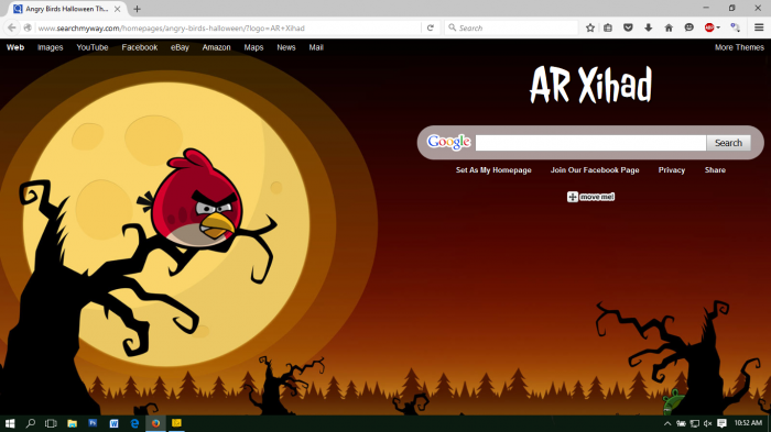 এখানে দেখুন ব্রাউজারের ডান দিকে উপরের অংশে আমার নাম (AR Xihad), তার ঠিক নিচে Google এর Search Bar, আর বাম দিকে উপরে মেনু আকারে কিছু প্রয়োজনীয় লিংক। আর পুরো পেজ জুরে Angry Bird Halloween থিম। খুবই সিম্পল।