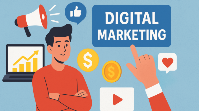 সহজ ভাষায় বললে — ডিজিটাল মার্কেটিং মানে হলো, ইন্টারনেট বা ডিজিটাল প্ল্যাটফর্ম ব্যবহার করে কোনো প্রোডাক্ট, সার্ভিস, ব্র্যান্ড বা আইডিয়া প্রচার করা।