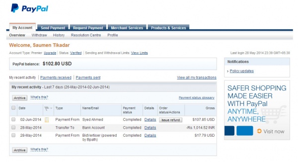 PayPal, Western Union, Payoneer , Bank Transfer সাপোর্ট করে। নিচে আমার PayPal পেমেন্ট স্ক্রীন সট দিলাম ।