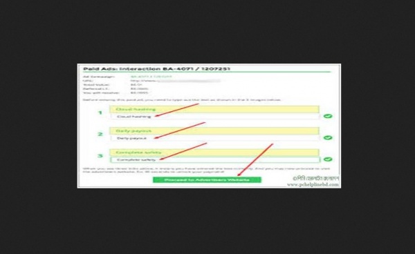 • এখন যেকোন add এ ক্লিক করলে আপনাকে ৩ টা লাইন এর লেখা লেখতে হবে যার মধ্যে প্রথম ২ টা [ 1st and 2 nd Image e ja lekha ache tai কপি পেস্ট করে দেয়া যাবে ] আর শেষের টা Captcha লিখে দিতে হবে।