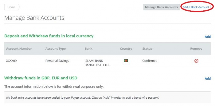 শুধু ব্যাংক একাউন্ট সংযুক্ত করলেই হবে না সেটি ভেরিফাই হতে হবে। পেইজা একউন্টে ব্যাংক একাউন্ট যুক্ত না থাকলে আপনার ব্যাংক একউন্ট যুক্ত করে নিন এখনি। এই জন্য Bank Accounts > Add Bank Account অংশে ক্লিক করে আপনার ব্যাংকের যাবতীয় তথ্যাদি দ্বারা পূরন করে নিন।