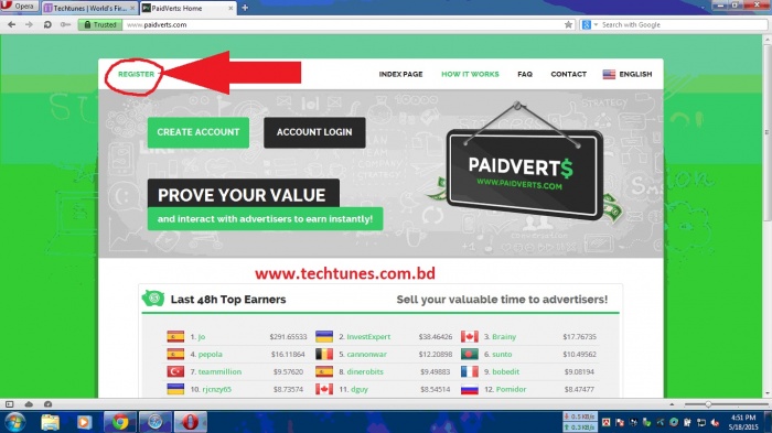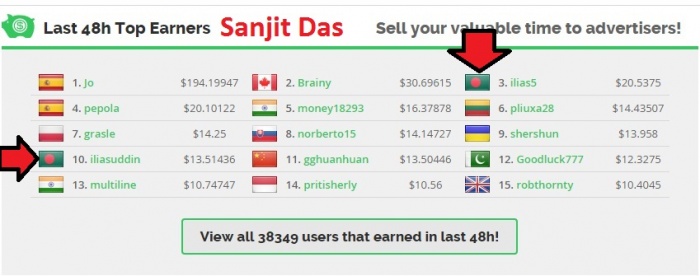দেখুন বাংলাদেশের পতাকা পেইডভার্স এর হোম পেজের টপ লিস্টে। এটা ইলিয়াস ভাই এক দিনেই প্রায় 35 ডলার ইনকাম করল গতকাল আপনি এখনও যদি চেক করেন ওনার নাম পাবেন।