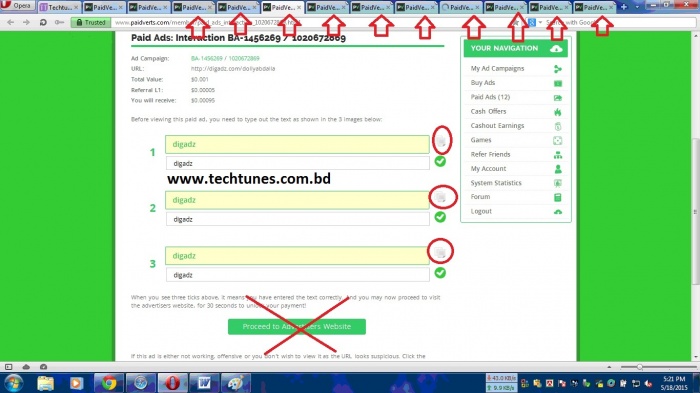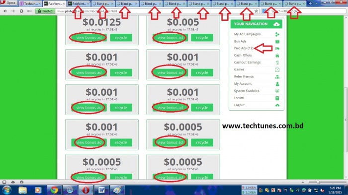 Step 14 : এই বার আমরা করব আসল কাজ। আমি বলেছিলাম সবগুলো এড একসাথে ক্লিক করার ট্রিক শিখাবো। এই ট্রিক শুধুমাত্র পেইড এডস এর ক্ষেত্রে প্রযোজ্য BAP এর ক্ষেত্রে নয়। সবগুলো এড একসাথে ক্লিক করতে আপনার কীবোর্ডের CTRL কী টা চেপে ধরে রাখতে হবে। আর সবগুলো এডের “View bonus ad" এ একসাথে ক্লিক করতে হবে। সবগুলো এড নিউ ট্যাবে একেক করে ওপেন হবে। মনে রাখবেন কী বোর্ডের কন্ট্রোল কী টা চেপে ধরে সবগুলোতে ক্লিক করবেন কিন্তু।